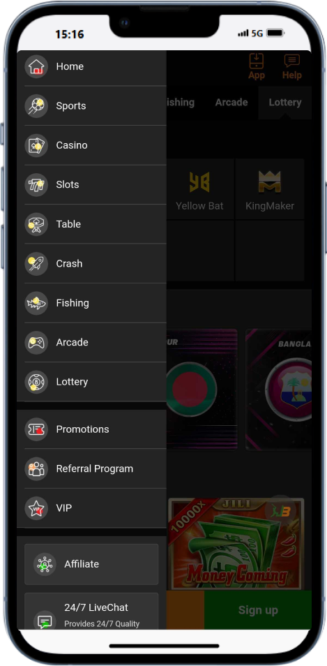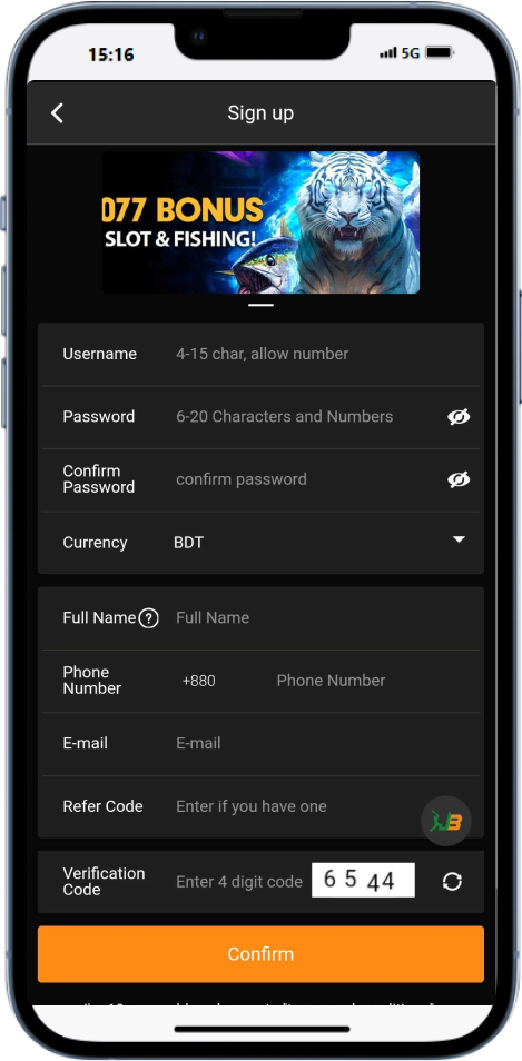 - Up to 1,077 BDT Slot & Fishing Signup bonus;